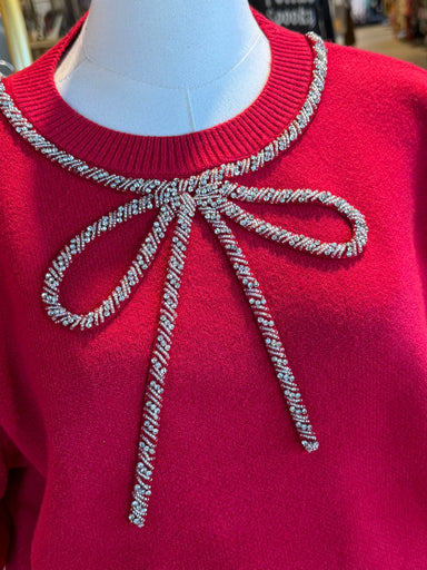 Red knit sweater with embellished bow detail polyblend Circumference:XL- 40 in1X- 42 in2X- 44 in
