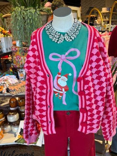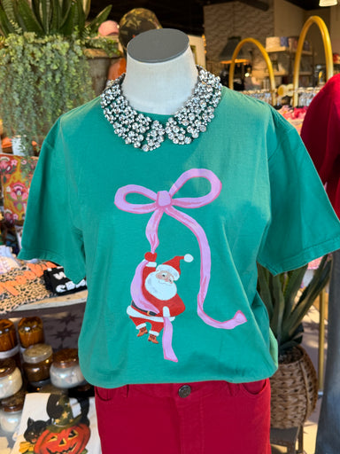 Get into the holiday spirit with our Bow Hanging Santa Tee! This vintage green short sleeve tee is perfect for the season. Enjoy the comfort wash w...