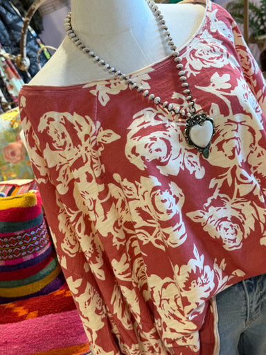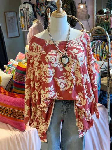 Red and off white rose print top. One Size - Oversized CIRCUMFERENCE: 78in