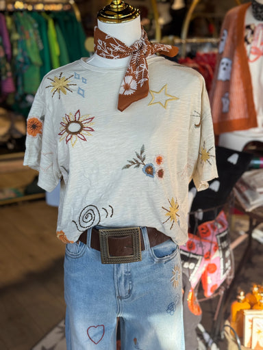 The Ingrid Tee is the perfect addition to your fall wardrobe. Crafted with intricate embroidery detailing, this tee adds a touch of elegance to any...