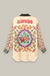 Classic long sleeve collared shirt with two front pockets with flaps. Print is black denim. Back reads,”AMORE” across the top. Pair with our matching skirt or pants for a artistic look.
