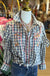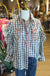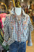 The Blue Jay Top is a charming western inspired plaid top with snap button closure and delicate embroidered detailing. Perfect for adding a touch of country chic to any outfit. Made with durable materials for long-lasting wear.