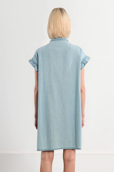 The Blakely Denim Dress is crafted from 100% cotton, ensuring breathability and comfort. Its sleeveless design and cap sleeves promote ease of move...