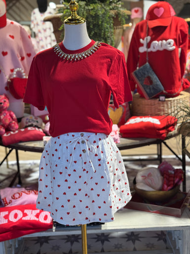 The Embroidered Heart Flare Mini is crafted from 100% cotton gauze, offering breathability and comfort. Its embroidered heart design adds a subtle ...