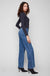 These medium blue jeans feature a fashionable flare leg design that’s sure to turn heads. The patch pockets include rivets for a touch of flair, and the regular rise ensures all-day comfort. Thanks to the stretch denim, they offer flexibility while retaining their shape, making them a perfect combination of style and practicality. Pair them with your favorite top for an easy, stylish outfit!