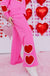 - Featuring red velvet heart appliqués with delicate doily style trim for a charming Valentine's inspired look
