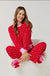 "Love" Ultra-Soft Jersey Knit PJ Set, your new cozy companion tor lounging in style. This matching set features a relaxed fit long sleeve top with contrast red trim and chenille "Love" lettering for a pop of playful texture. The coordinating pants include on-seam pockets and a 29" inseam for just-right comfort. Whether you're curling up with a good book or celebrating a cozy night in, this set brings sweet vibes to your