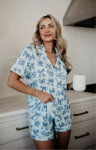 There’s something undeniably sweet about soft mint green and tiny embroidered bows. This matching tee and boxer-style short set is crafted from our...