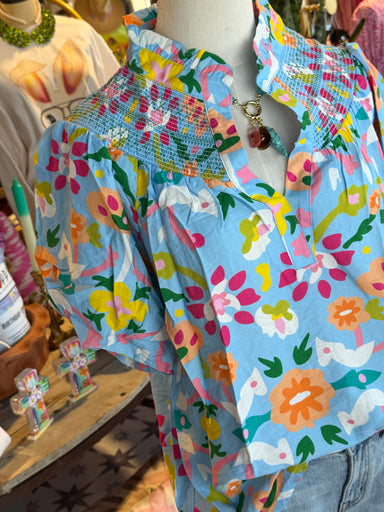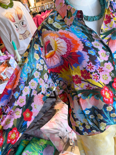 The Nepal Top features a bright floral design crafted from high-quality cotton, ensuring breathability and comfort. The button detailing and struct...
