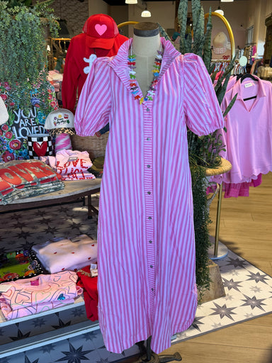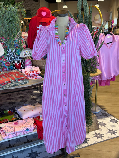 The Light Pink stripe maxi dress features a combination of pink and white stripes, offering a visually appealing design. With functional button det...