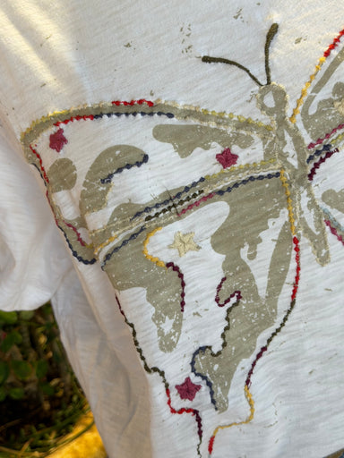 The Filippa Butterfly Tee is a white T-shirt crafted from 100% cotton for breathability and comfort. It features an embroidered butterfly design, a...