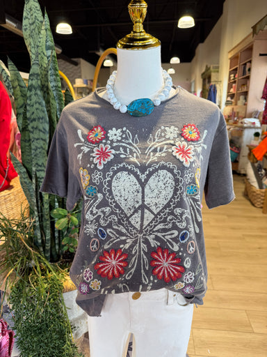 The Samara Wild Heart Tee features a gray 100% cotton composition, ensuring breathability and comfort. The embroidered flower design enhances durab...