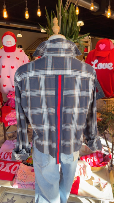 Handmade one of a kind vintage tops with red and navy ribbon stripe . One size fits up to 14