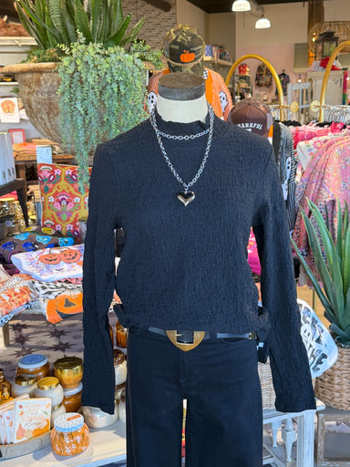 Elevate your everyday style with this beautifully textured mock neck top, designed to bring a touch of sophistication to any look. Crafted with a s...