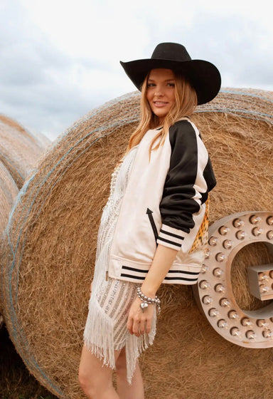 The Cream and Black Jacket channels fearless spirit and unstoppable strength with every wear. Featuring a bold quote inspired by Joan of Arc, this ...