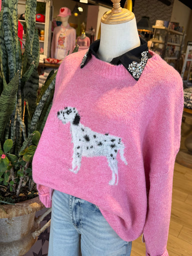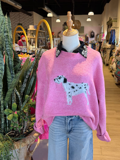 The French Spotted Dog Sweater features a pink base adorned with a spotted dog design, complemented by black accents. This combination offers a sty...