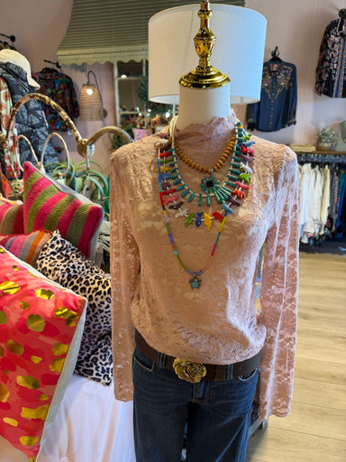 Beautiful rose lace, mock, long sleeve top runs true to size