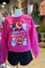 Get in the spirit with our hot pink sweatshirt featuring a ghost pumpkin graphic, hats, and brooms – perfect for the holiday season. Made with 100% cotton for comfort and style. Show off your spooky side with this must-have sweatshirt.