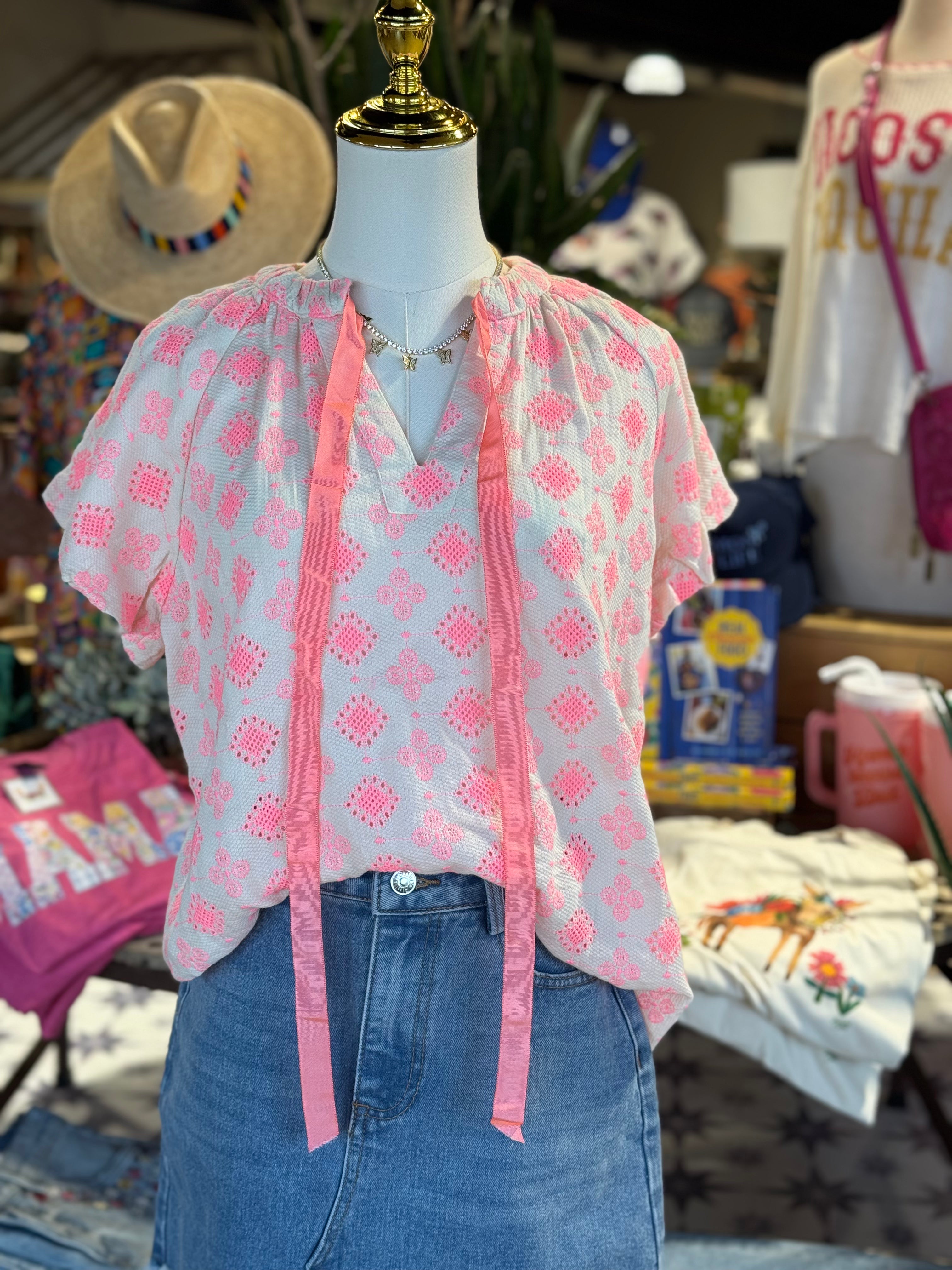 Adorable neon print with ribbon tie front.