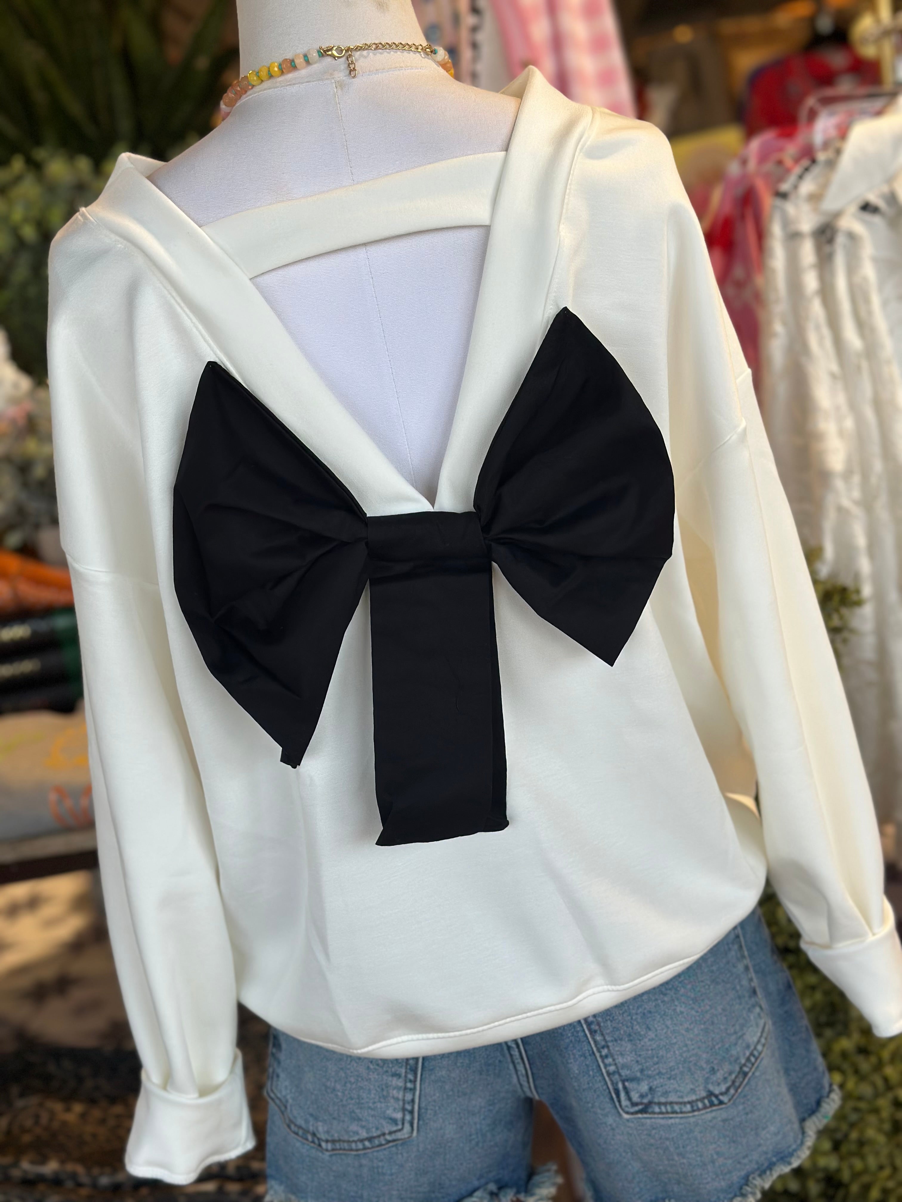 Oversized sweatshirt with black bow detail on back