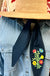 Add a bold pop of color and timeless charm with this beautiful embroidered ascot scarf. Measuring approx. 38 inches in length, this fabulous scarf is perfect to wear as a classic neck accent, a stylish tote bag accessory, or even tied to your hair for a chic look.