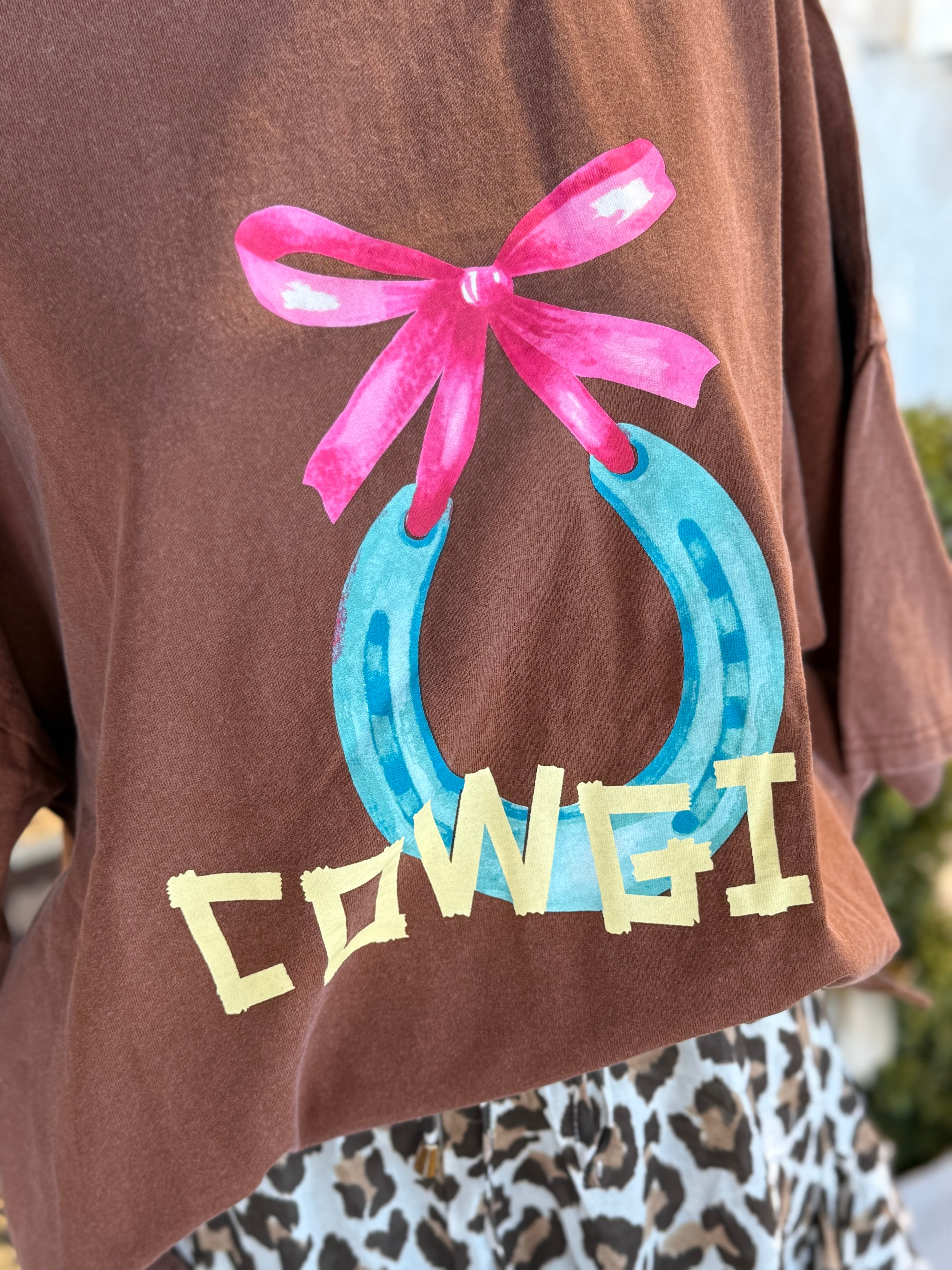 Cotton jersey cowgirl graphic tee. Oversized. Size down