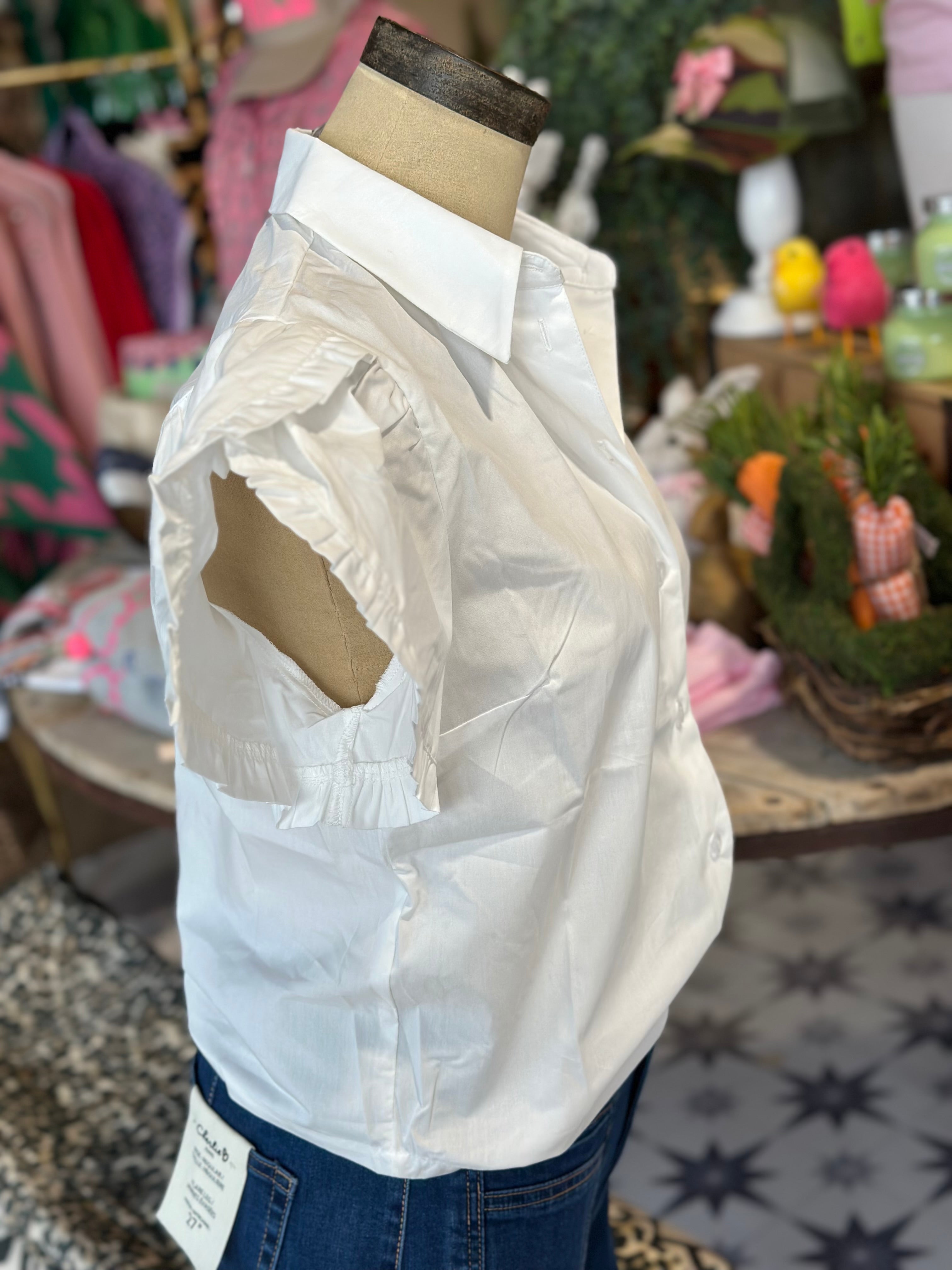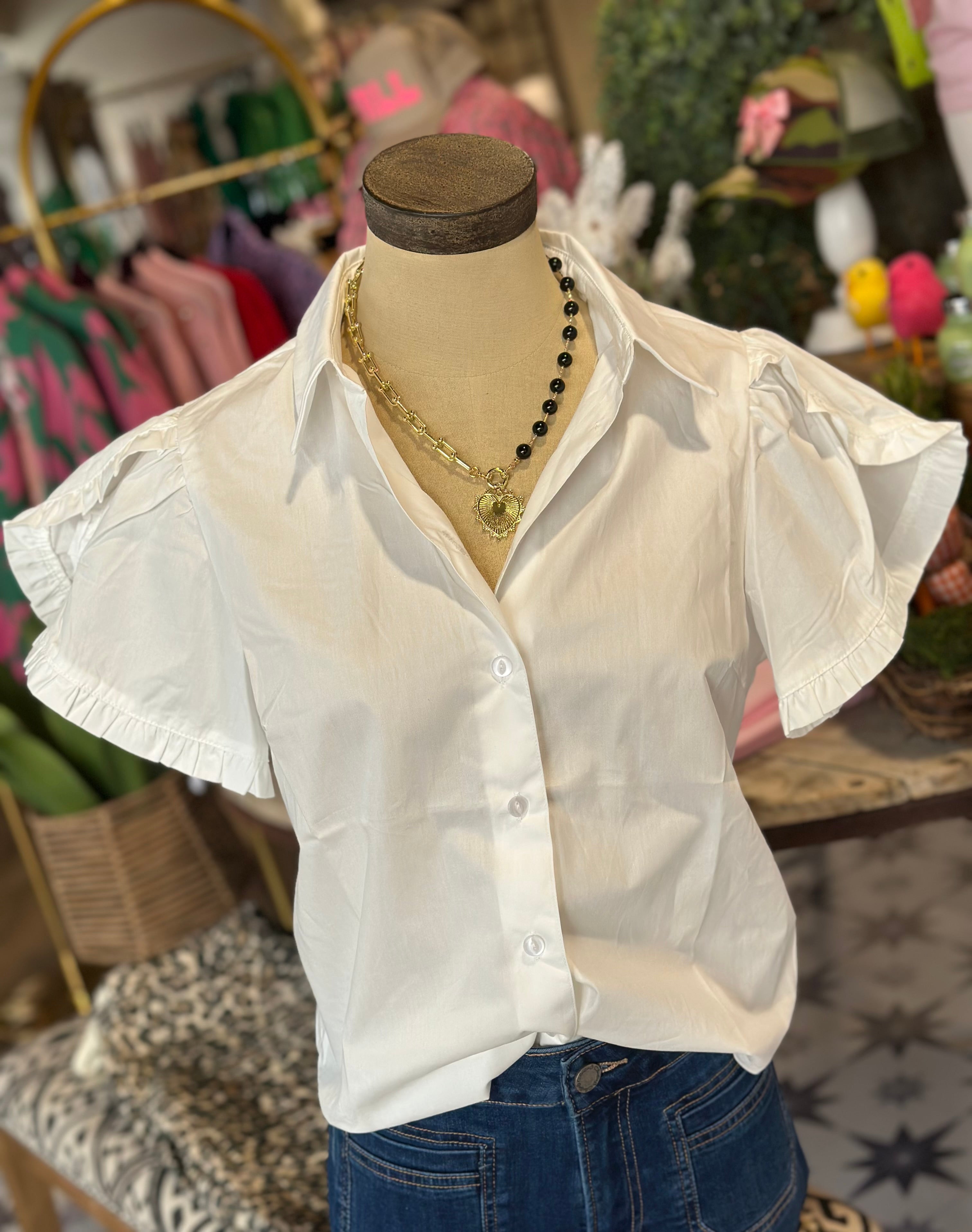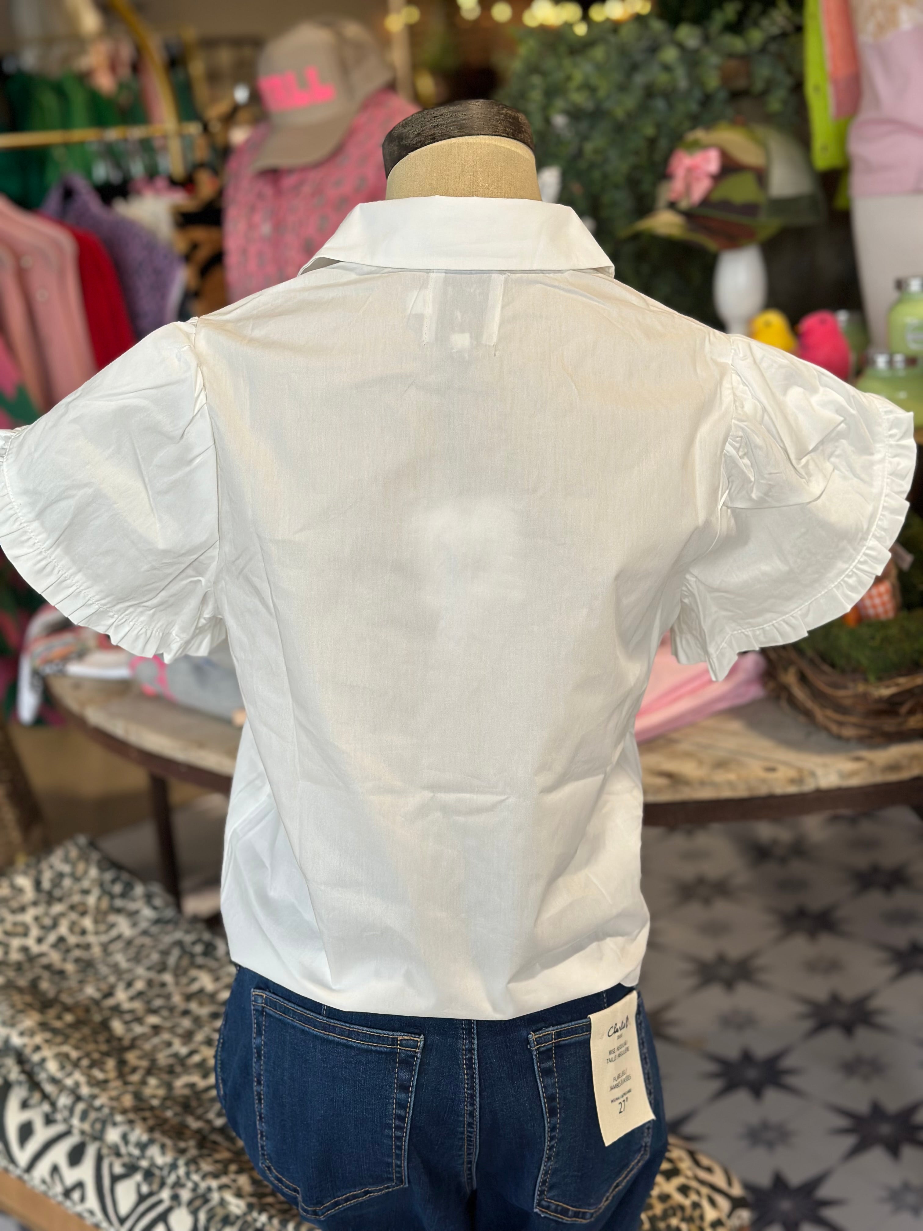 White top with button up detailing and a fun flirty sleeve.