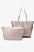 3-in-1 reversible tote comes in an elegant aubergine color with a beige interior. The removable security pouch with a crossbody strap adds convenience and peace of mind. Crafted from vegan leather, this tote is both cruelty-free and environmentally friendly.