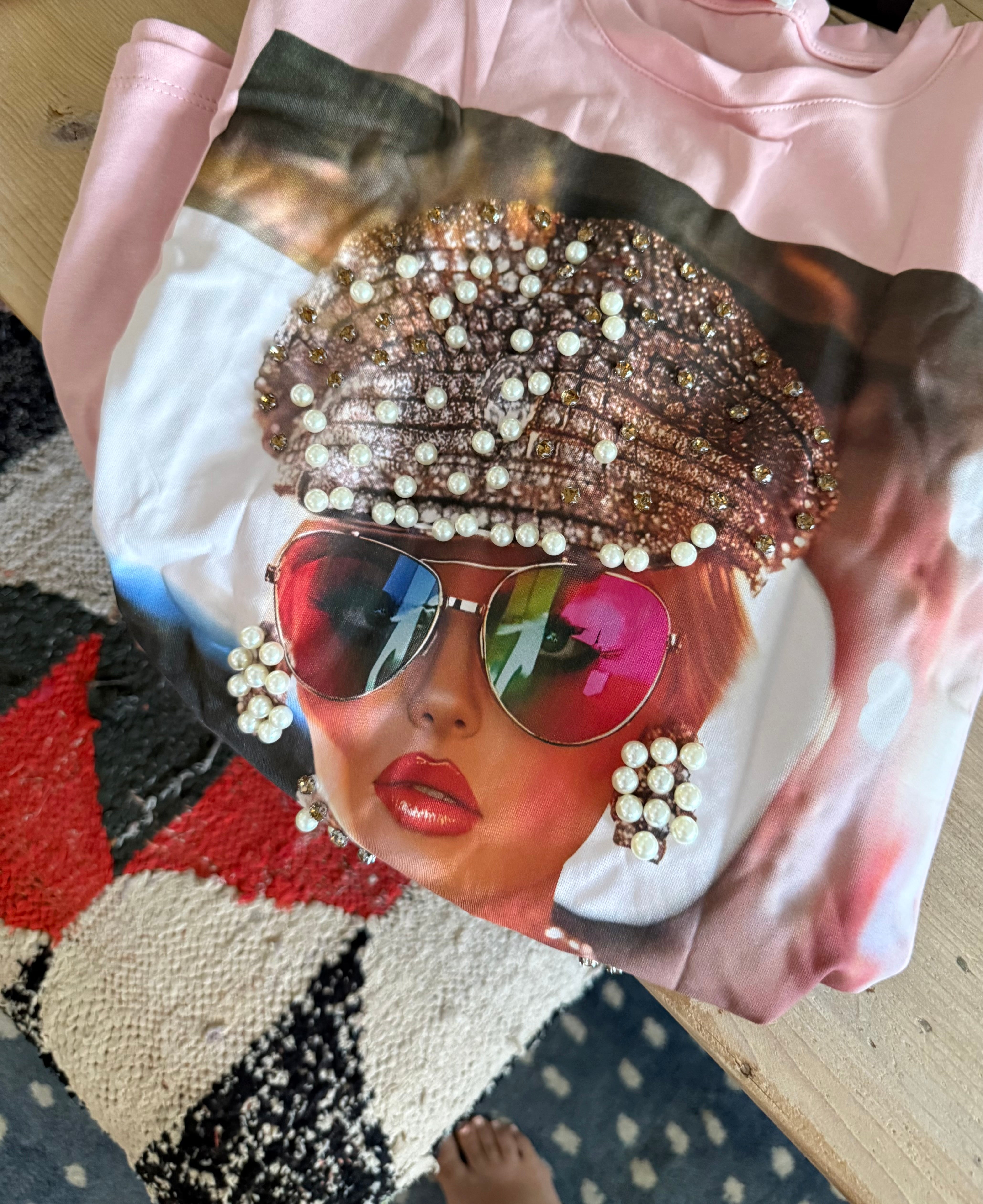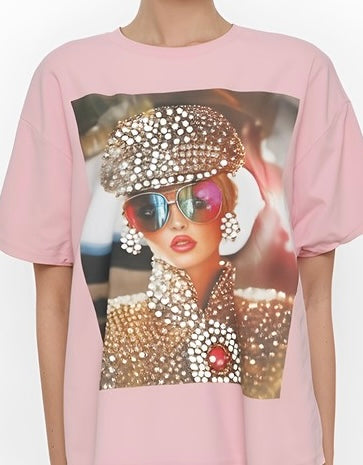 Express your unique sense of style with our Glitzy Tee! Perfect for fashion-forward girls, this top pairs effortlessly with skirts, shorts, and more. Pearls/rhinestone embellishments. So go ahead, let your creativity shine with the Glitzy Tee!