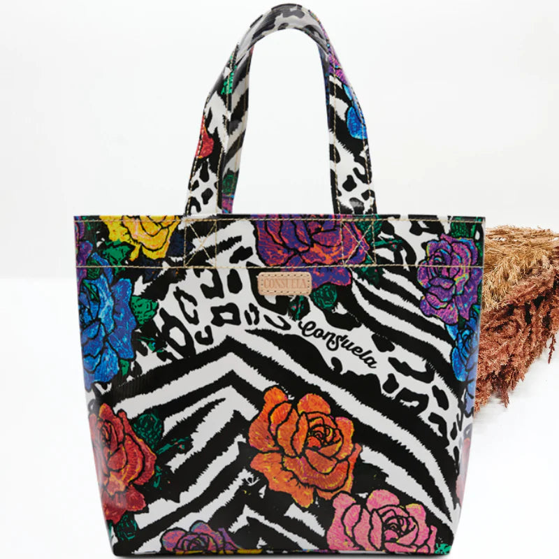The Mini Bag was made for the little moments- carrying keys and a snack for a walk on the beach, lunch and a cold brew to the office, or for waiting patiently in the car, folded neatly under your seat. This bag made of easy-to-clean ConsuelaCloth™ is the smallest of our colorful utility totes.