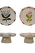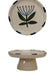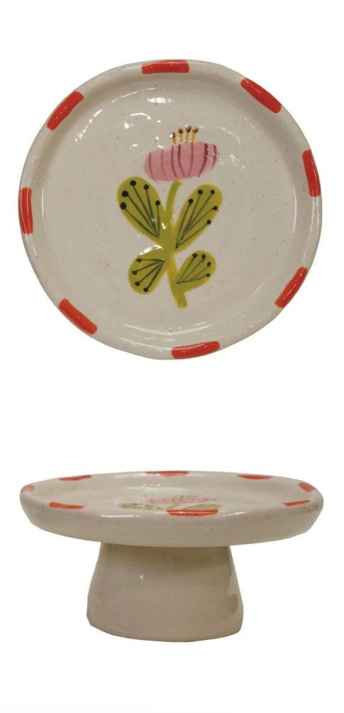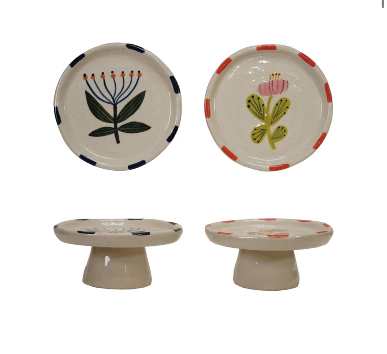 : 5" Round x 2-1/2"H Hand-Painted Stoneware Organic Shaped Pedestal w/ Flower Image, 2 Styles