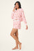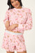Kick back with a playful western twist in this pink two-piece pajama set. Crafted from baby peachy waffle, it features cowboy hats, boots, and stars across a long-sleeve top and boxer shorts—holiday lounging with a western spirit.