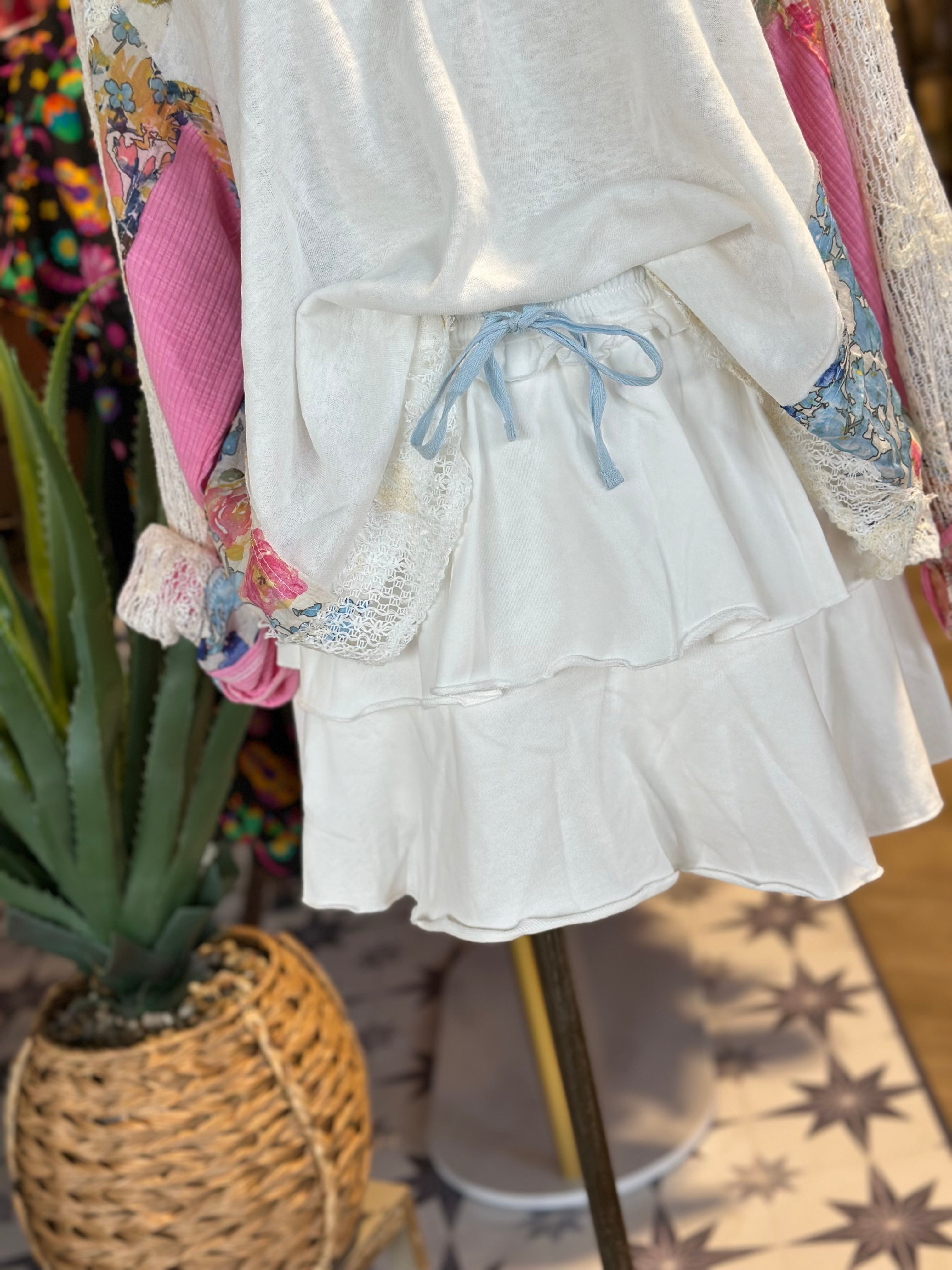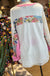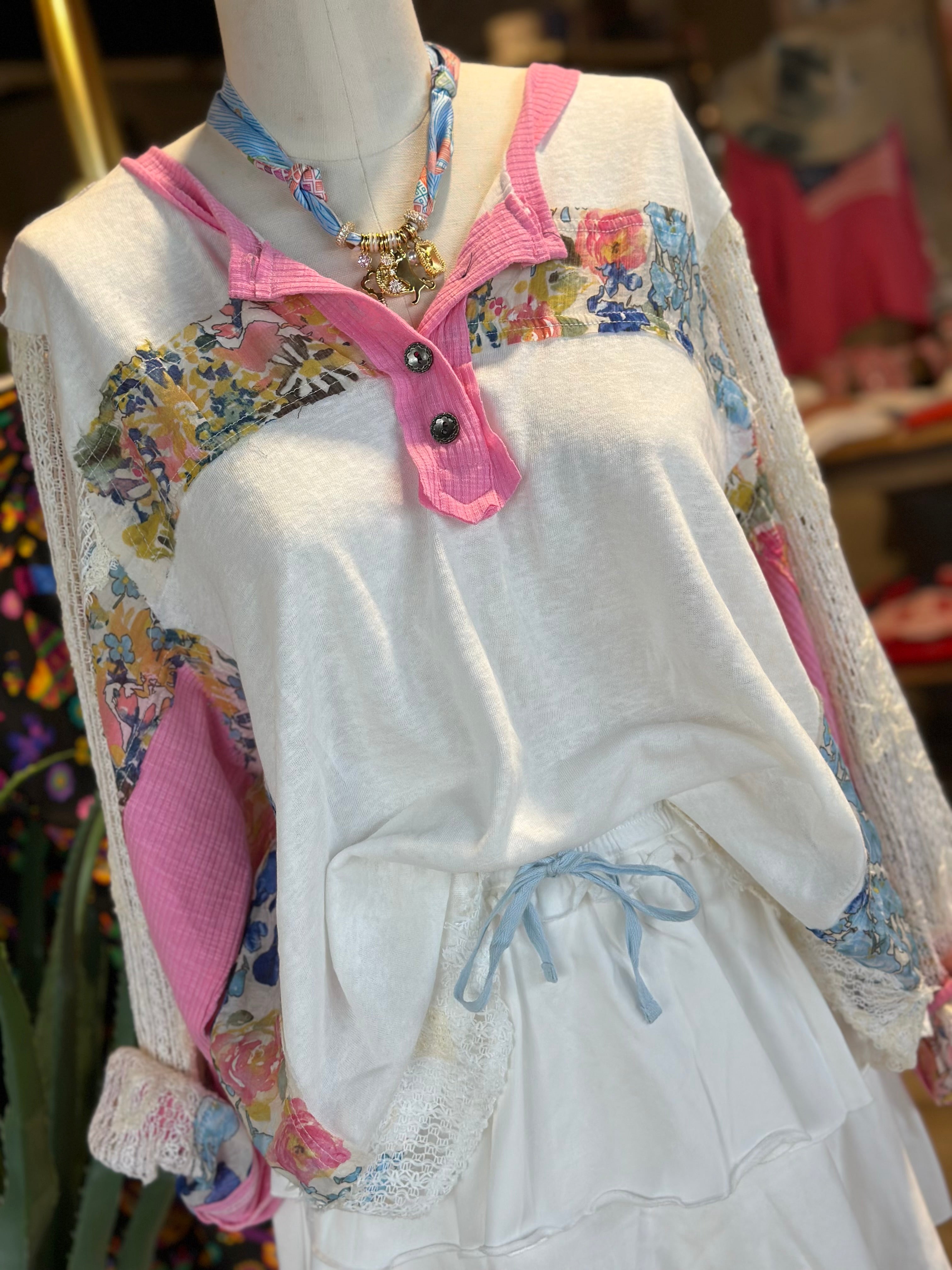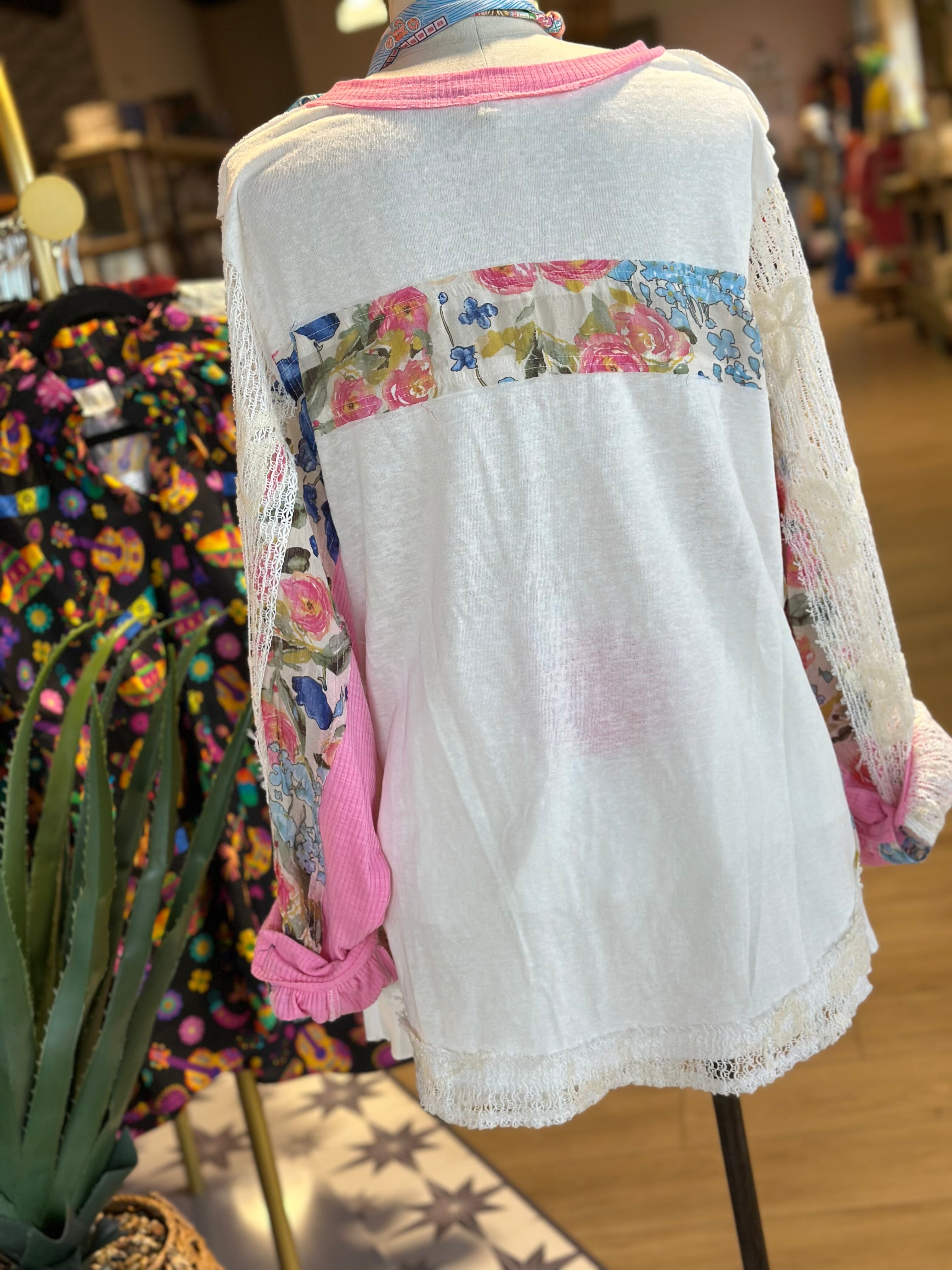 Super lightweight long sleeve boho mixed print top. Roomy. Size down. Paired with Jennie ruffle skirt