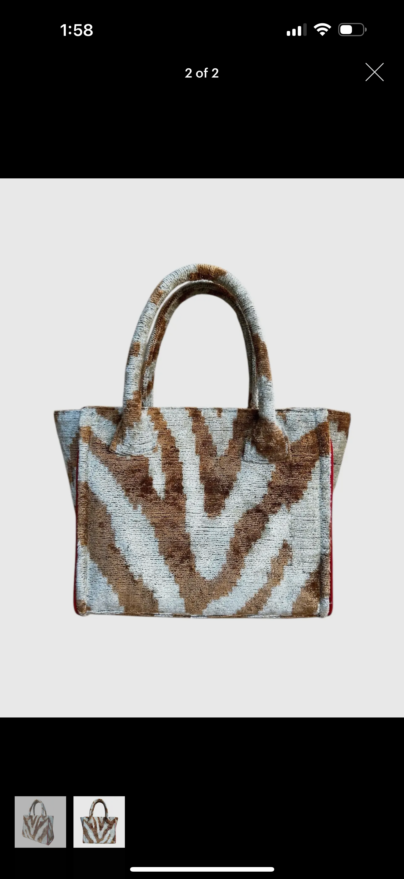 • Hand-woven silk velvet ikat fabric exterior with zipper closure