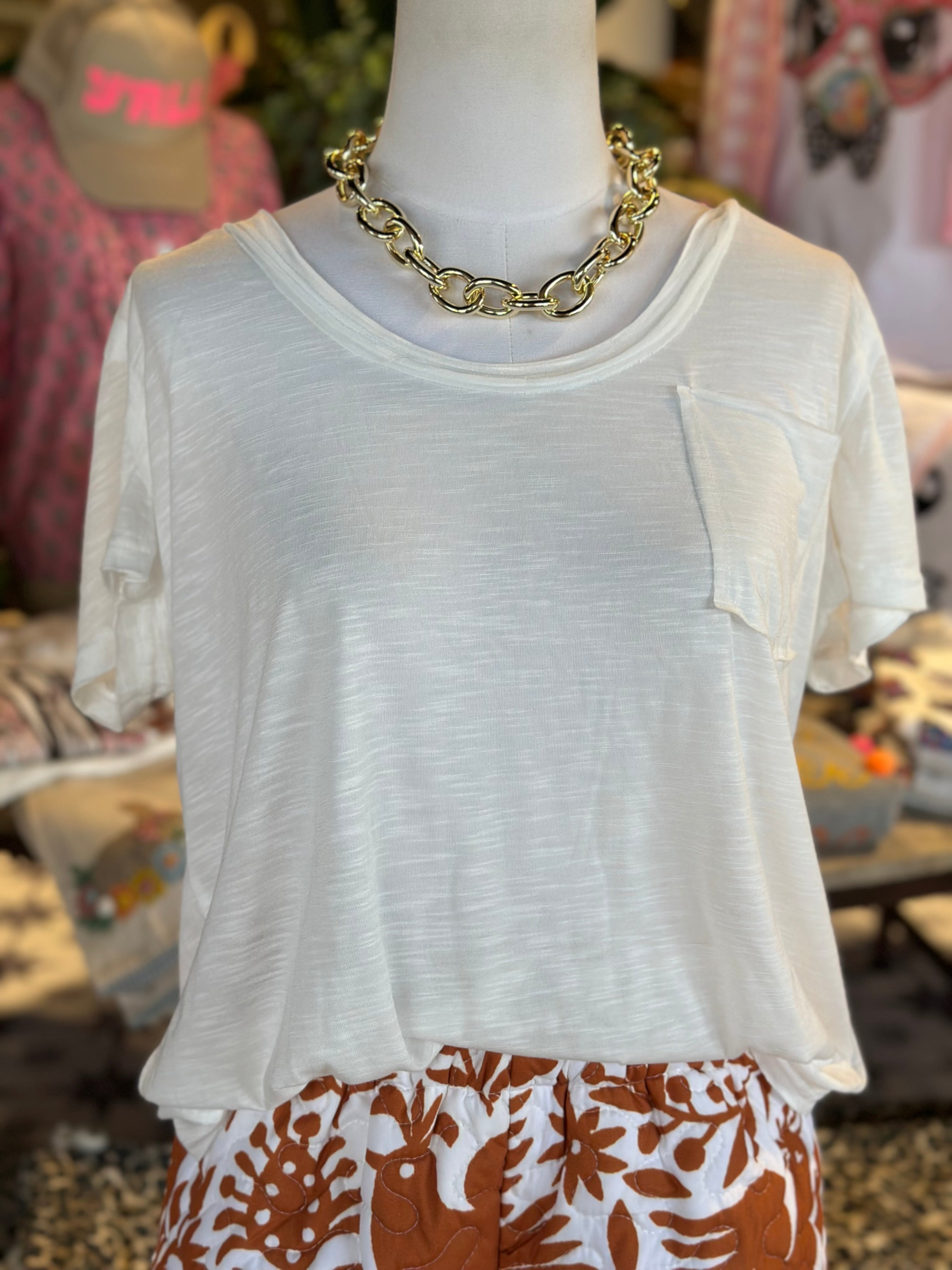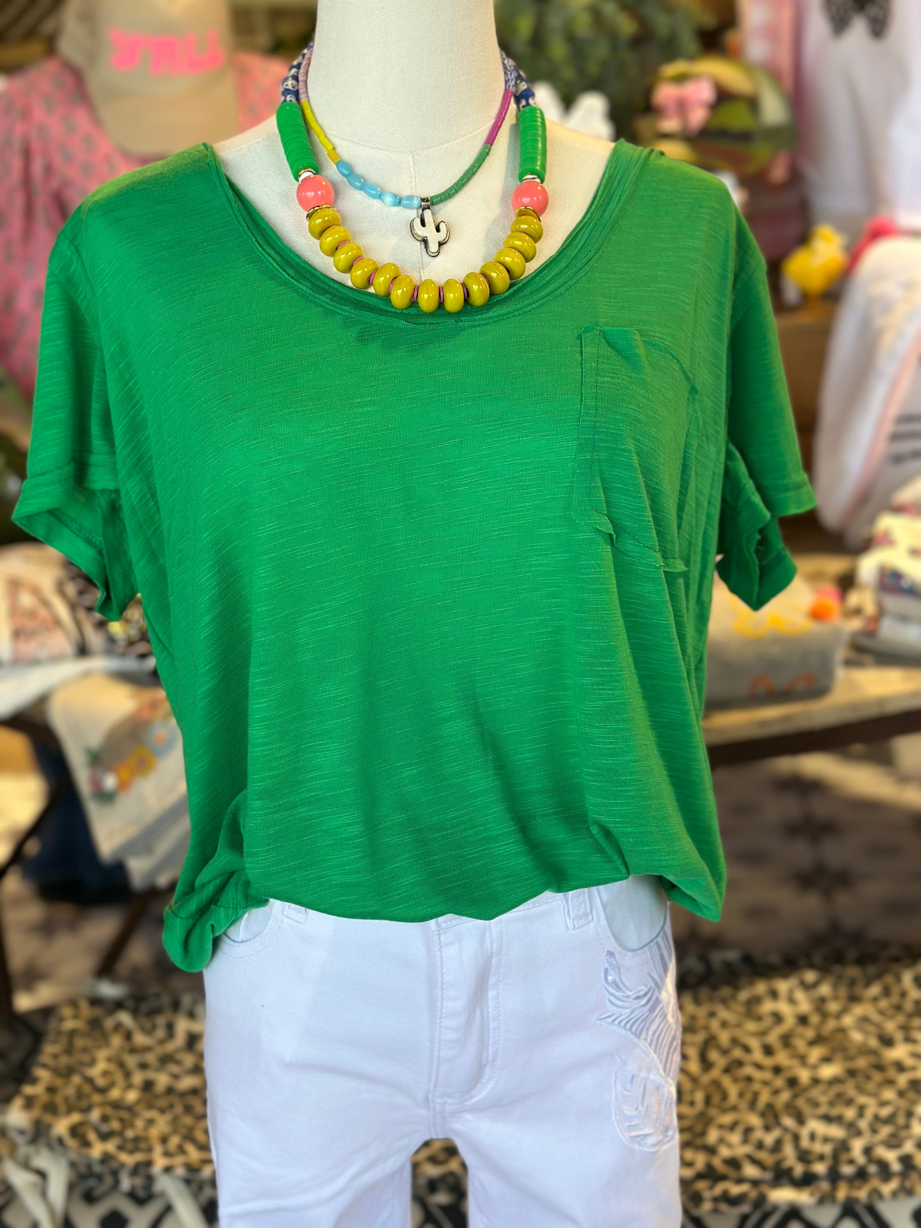 Green or White cotton scoop neck tee