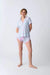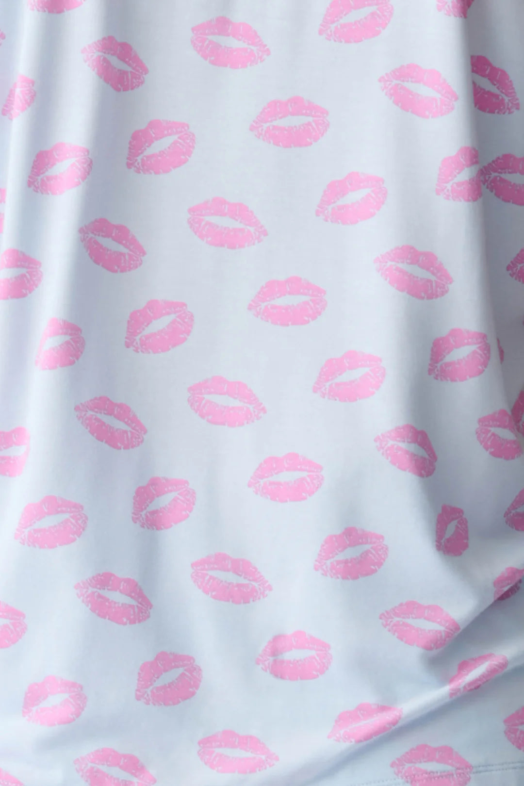 Make bedtime a fun and flirty affair with this adorable blue collared PJ set! Featuring a playful pink kiss pattern, this short sleeve top and matching shorts come with a stylish head wrap to complete the look. Perfect for cozy nights in, this set is sure to add a touch of sweetness to your sleepwear collection!