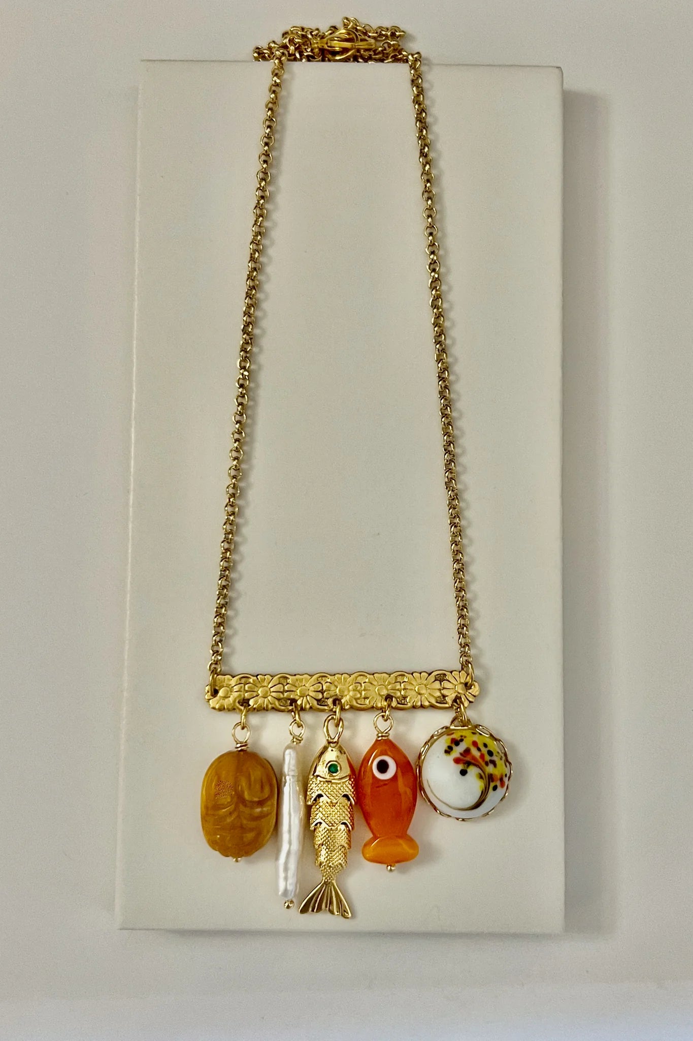 • 18K gold filled fish and vintage glass cabochon