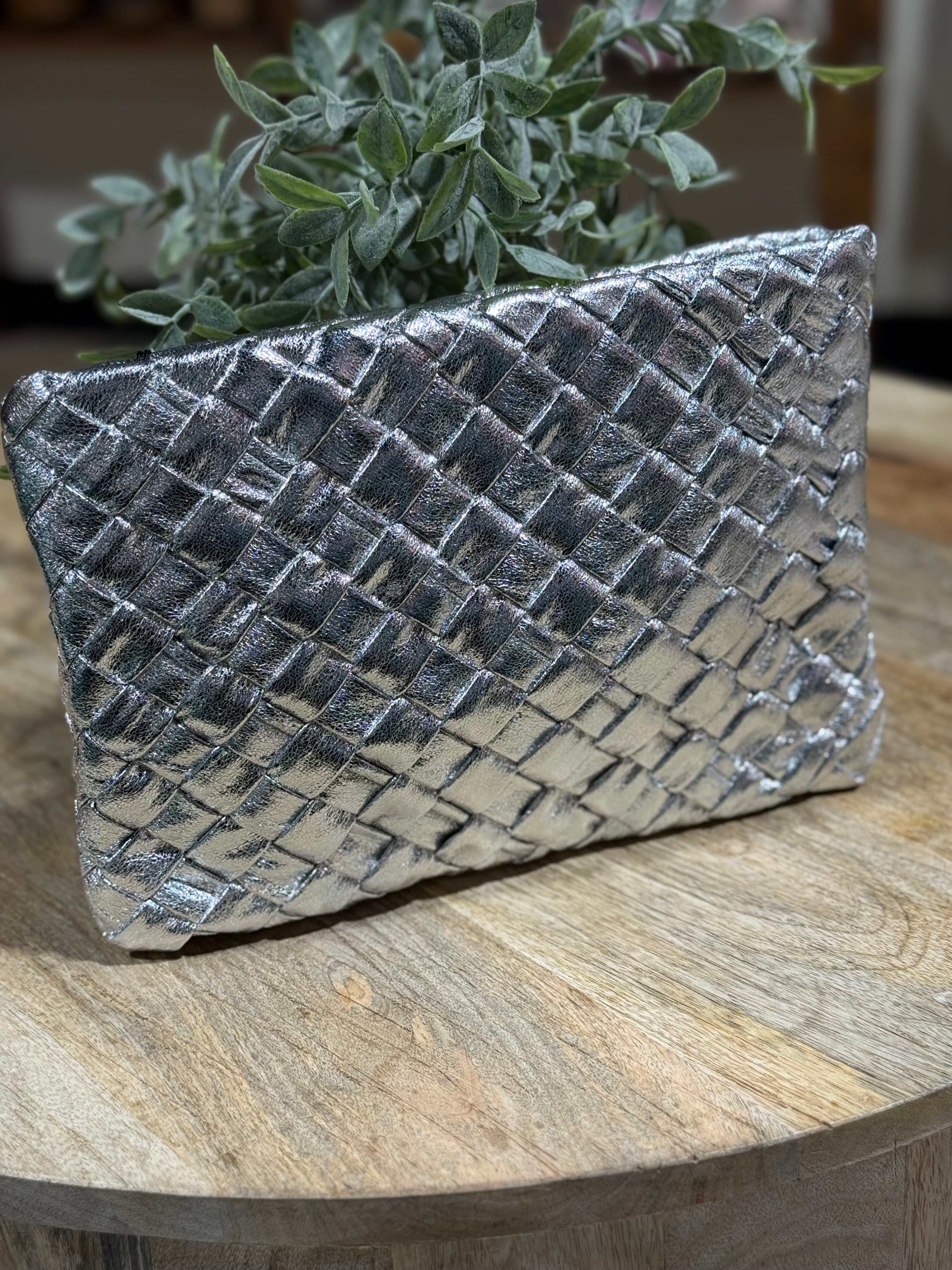 Nieves Woven Clutch in White is a chic and versatile handbag designed for effortless elegance. Featuring a woven textured exterior. Can be worn several ways