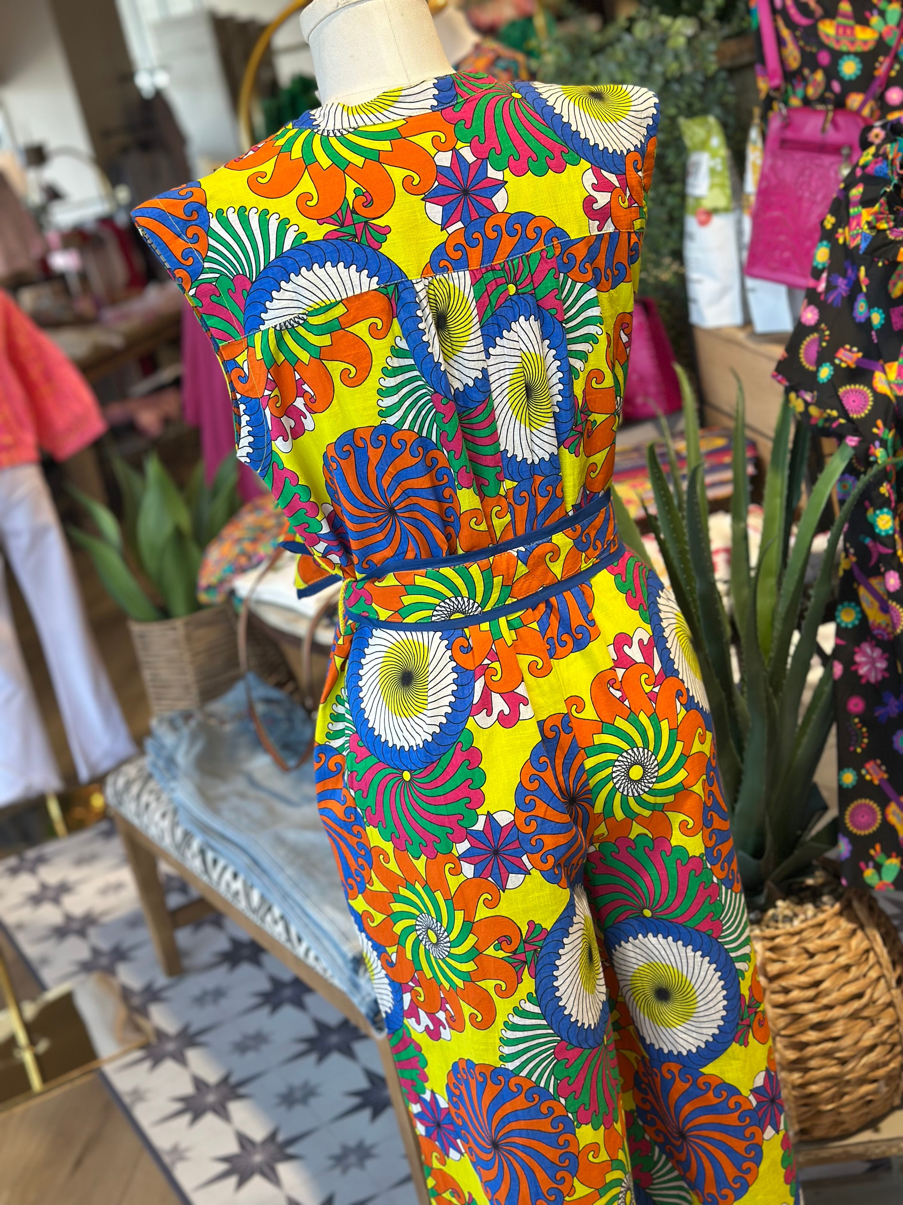 The fit is perfect on this pantsuit. So flattering on. Cotton.