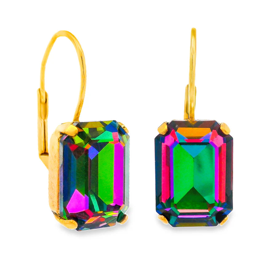 Add a touch of whimsy to your outfit with Rubin Hook Earrings. These 1" earrings feature antique gold plating and high quality crystals, adding a touch of elegance to your look. Hypoallergenic surgical steel hoops make them easy to wear without irritation. Handmade in Canada for a unique and stylish statement. (Can't get more Canadian than that, eh?)