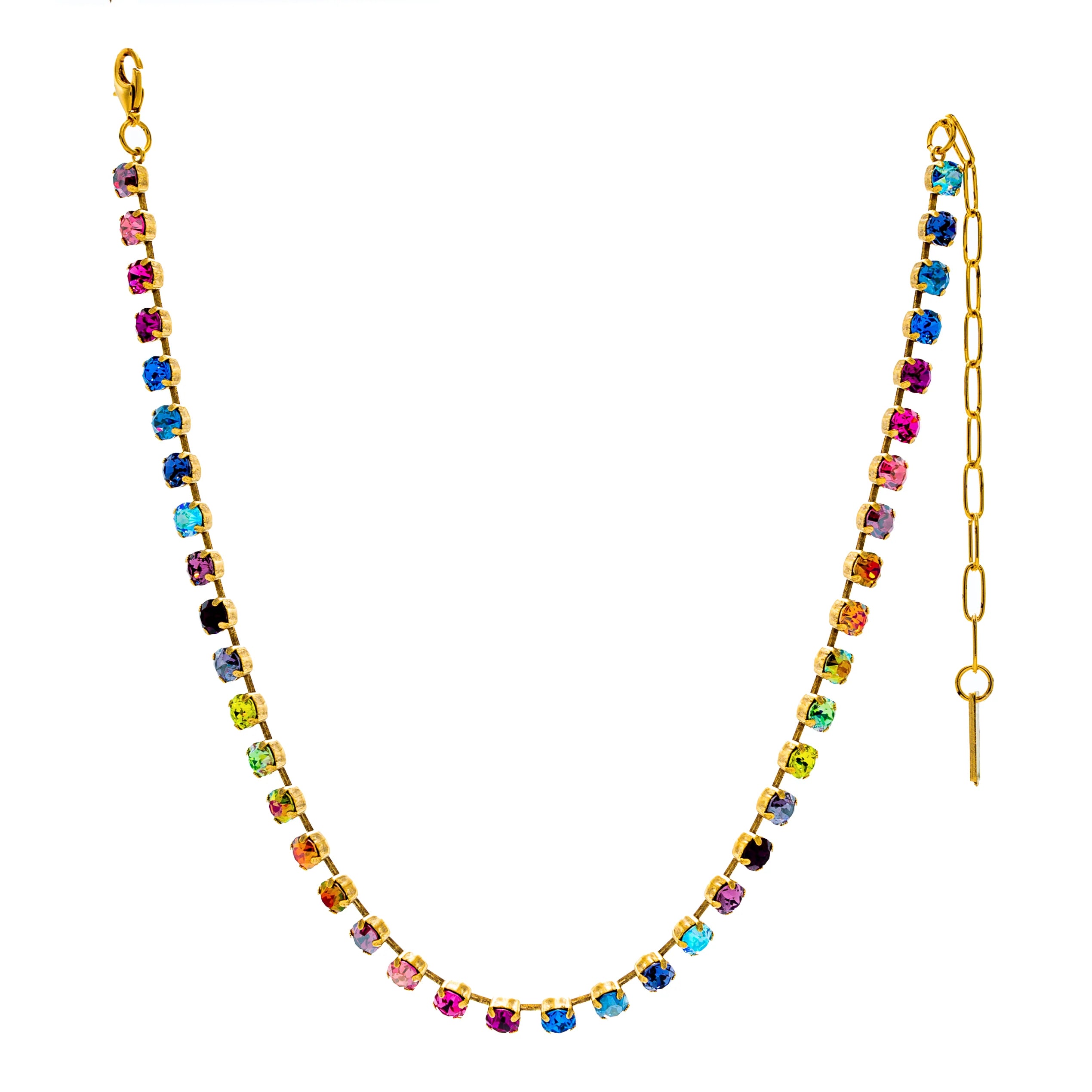 Bring sparkle and shine to any look with this Sarina Necklace in Bohemian Wonderland, featuring antique gold plating and 6mm high-quality crystals. Its brass base metal and 13" length plus 4" extension, make it the perfect fit for any outfit. Shine on, sweetie! (P.S. It's made in Canada)